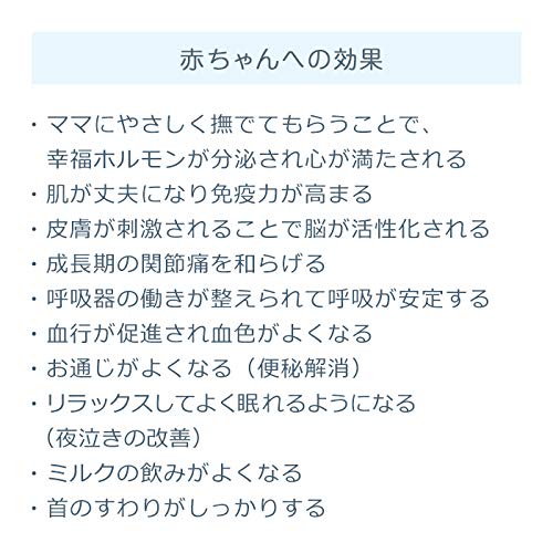 - 濃密なのにすっとなじむ伸びの良いテクスチャー。一年を通して毎日のベビーマッサージをより気持ちよく。