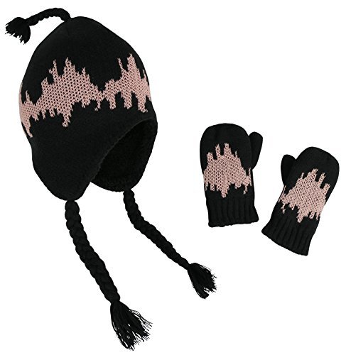 N 'iceキャップLittle Girls andベビーソフトシェルパ裏地マイクロフリースパイロット帽子とミトンセット US サイズ: M カラー: ブラック