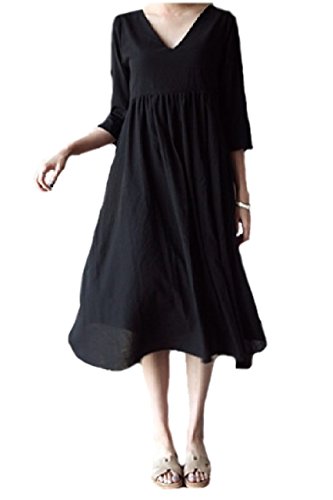 【La Bella】 2WAY フレア ワンピース チュニック 5分袖 コットン 授乳用 ファスナー 付き (M, ブラック)