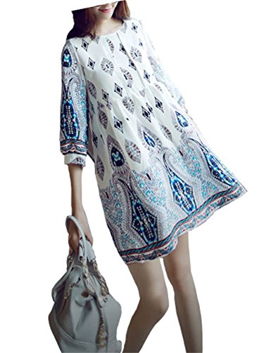 【La Bella】 マタニティ チュニック ペイズリー柄 ワンピース 産前 産後 長く 使える 6分袖 涼しげ 民族柄 カジュアル (XL)
