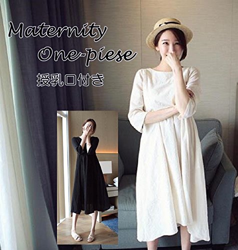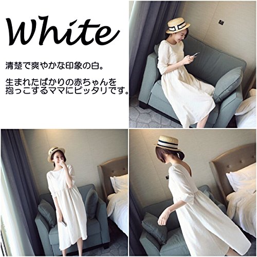 【La Bella】 2WAY フレア ワンピース チュニック 5分袖 コットン 授乳用 ファスナー 付き (M, ホワイト)