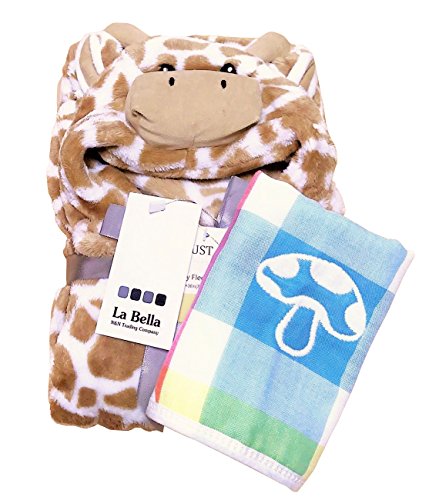 【La Bella】 アニマル ベビー タオル ポンチョ 男女兼用 空調 防寒 対策 プール サイド 海 出産祝い にも (キリン(茶色))
