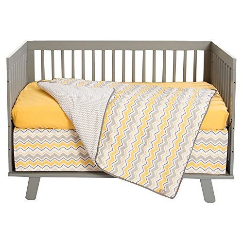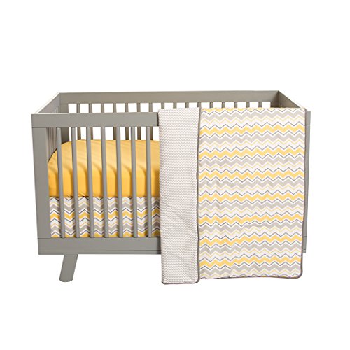 3ピースグレーホワイトイエローシェブロンベビーベビーベッド寝具セット、新生児子供部屋ベッドセット幼児子ソフトキュートDoveグレーAdorableジグザグストライプパターンリバーシブルブランケットキルト、コットン