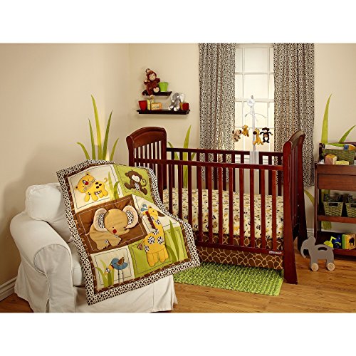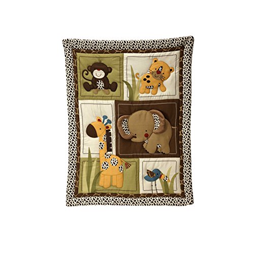 - ブラウングリーンイエローsafariベビーベッド寝具セットを希望される場合は、動物がテーマの新生児保育園ベッド3点セット幼児子Soft Elephantジャングルモンキーキリンライオンシミボーダーブランケット掛け布団、ポリエステル綿