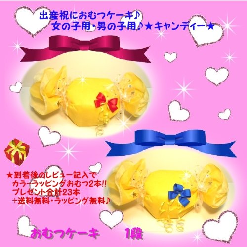 ベビー出産お祝いに 人気のおむつケーキを大切にお届け致します 出産祝い おむつケーキ(オムツケーキ)可愛いベビーには 可愛いキャンディー包みのケーキをプレゼント 男の子にも女の子にも大人気 思わず可愛い〰と声に出したくなる オススメですo(〃^▽^〃)oお友達・ご家族へのプレゼントに また 産休に入られる方に皆で贈る出産祝いにo(〃^▽^〃)o パンパース(Sサイズ、21枚)紙オムツは赤ちゃんにとって必需品 ケーキに使用しているオムツのサイズは基本Sサイズです。(2ヶ月?6ヶ月向け)おむつメーカーは、病院で一番使われているパンパースを使用しております。作品のお届け時期につきまして おむつケーキは通常3?5日で発送しております。 お届け時は写真のようにラッピングして大切にお手元にお届け致し ます。( 発送はご入金確認後です ) お名前工房楽のお名前ポエム同梱発送可能です。明細書や領収書などは同梱しておりません金額の記載のあるものはお入れしませんので明細書・領収書ご希望の場合、別便にて発送致しますので、お申し付け下さい。