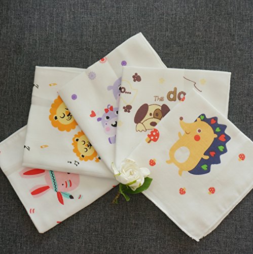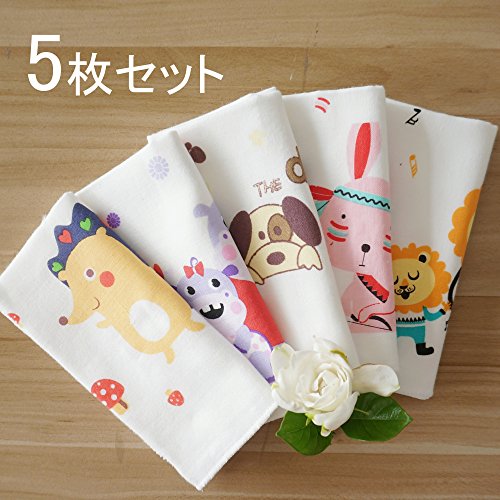 NANPIPER(ナンピパー) ガーゼハンカチ ベビー・赤ちゃん・子供用 タオル はんかち よだれかけ 【コーマ高級綿100%使用】5枚セット 約30×30cm かわいい やわらかい 男女共用(ウサギ ライオン カバ イヌ ハリネズミ)