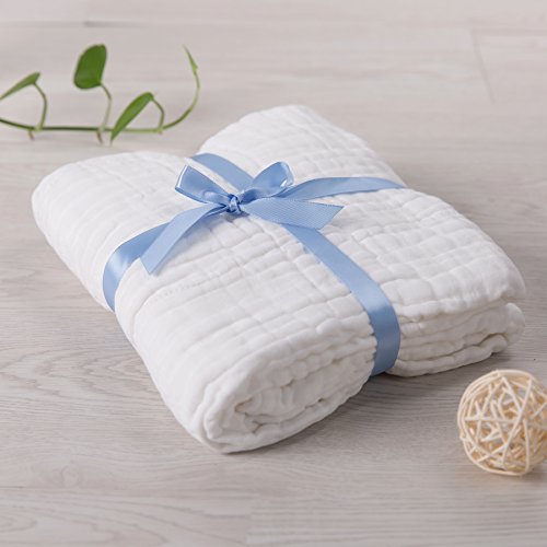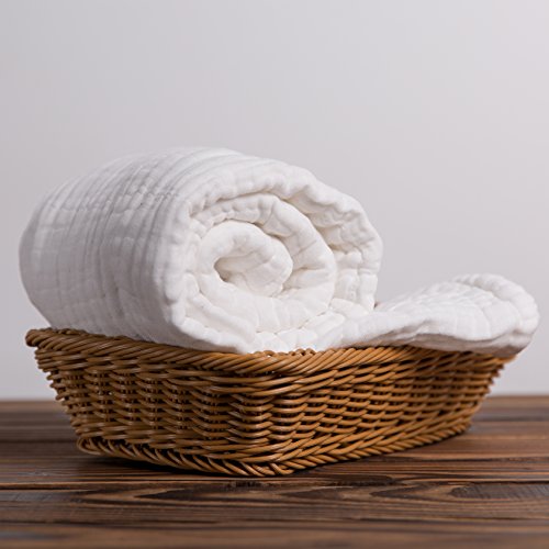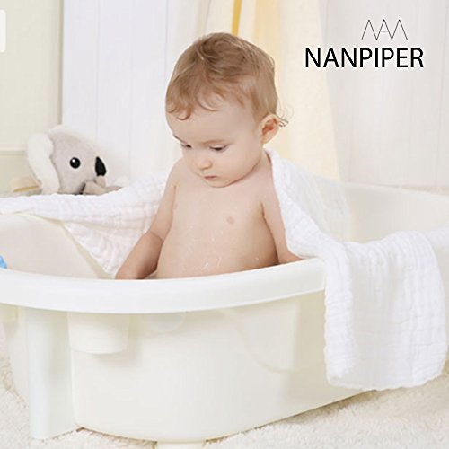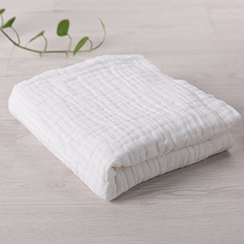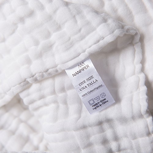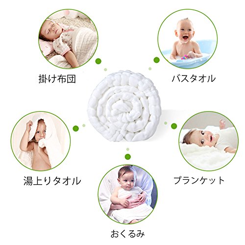 NANPIPER(ナンピパー) ベビー・赤ちゃん用 バスタオル ボタニカル 6層ガーゼ 純綿 1枚 約108x108cm やわらかい 男女共用 (ホワイト)