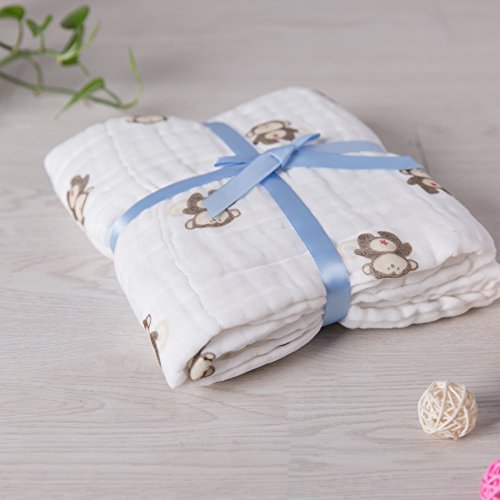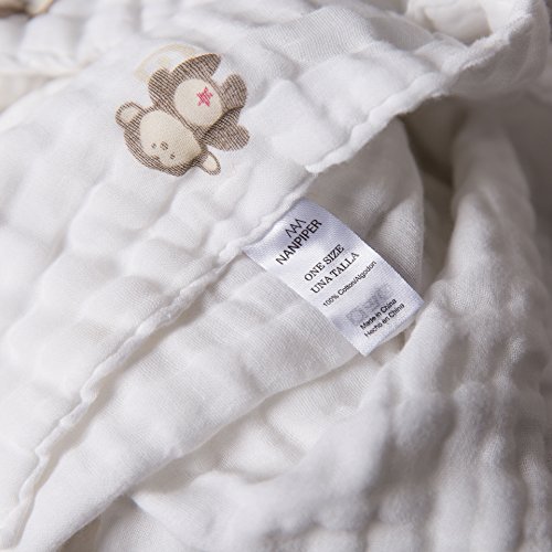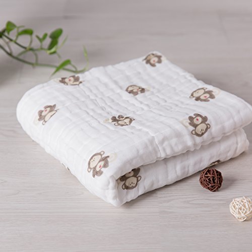 NANPIPER(ナンピパー) ベビー・赤ちゃん用 バスタオル ボタニカル 6層ガーゼ 純綿 1枚 約108x108cm やわらかい 男女共用 (サル柄)