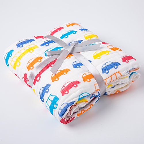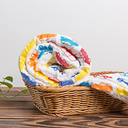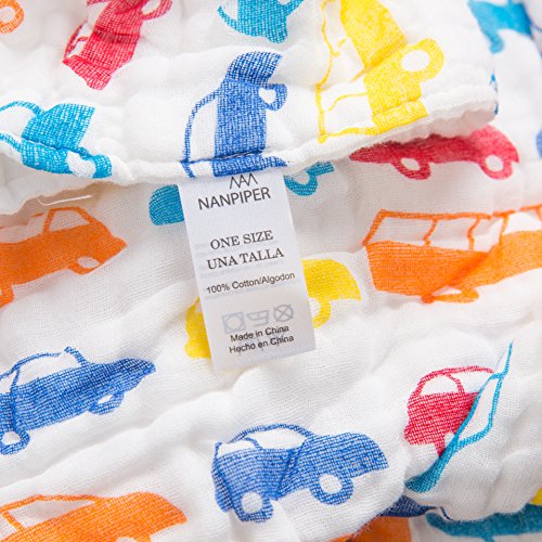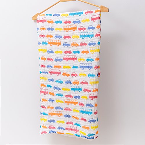 NANPIPER(ナンピパー) ベビー・赤ちゃん用 バスタオル ガーゼおくるみ 6層ガーゼ 純綿 1枚 約108x108cm やわらかい 男女共用 (クルマ柄)