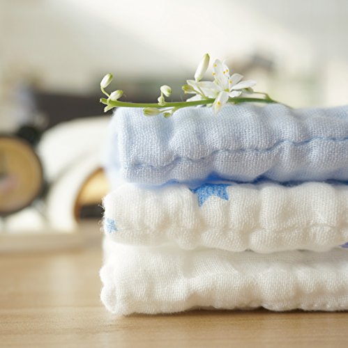 NANPIPER(ナンピパー) ガーゼハンカチ ベビー・赤ちゃん用 タオル よだれかけ よだれカバー 抱っこひも用 約32x32cm 純綿 3枚セット やわらかい 男女共用 ブルー系