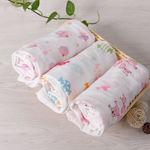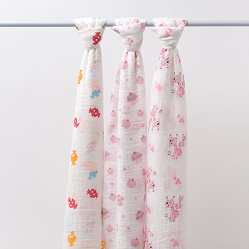- 【モスリン・スワドル】 3枚セット 約120×120cm 中国製。モスリンコットン100%だから、安心してお使いいただける。商品の性質上、最初の数回はホコリや毛羽が落ちやすく なっております。 何度かお洗濯をして頂けると改善され、さらに肌馴染みよく柔らかい質感になります。
