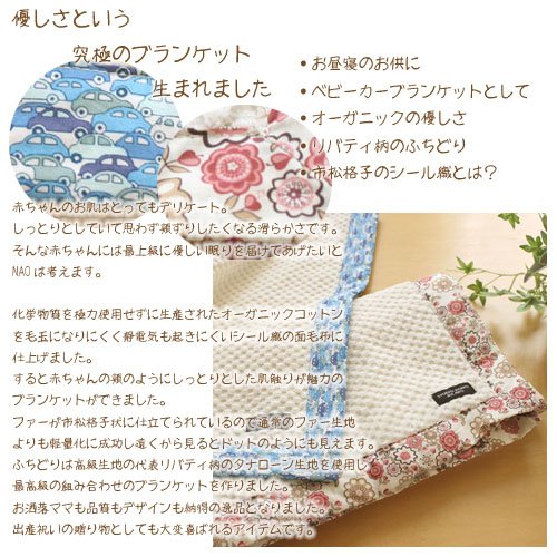 【出産祝い用ギフトラッピング無料】StudioPOPPOオーガニックコットンファーブランケット(リバティ柄-マルチフラワー)