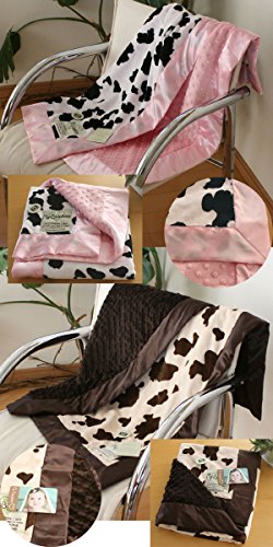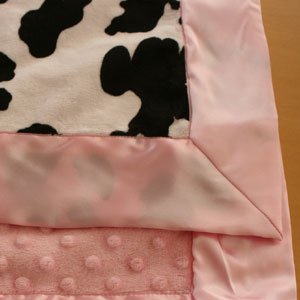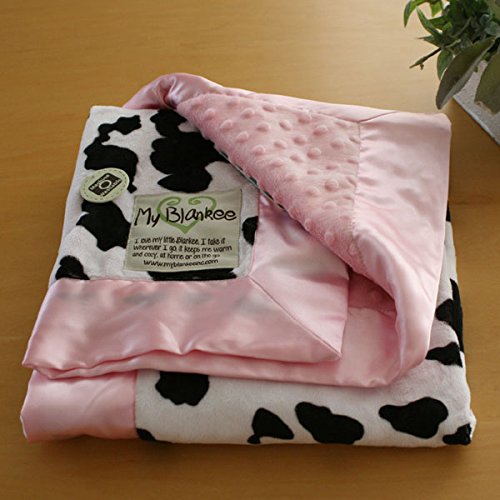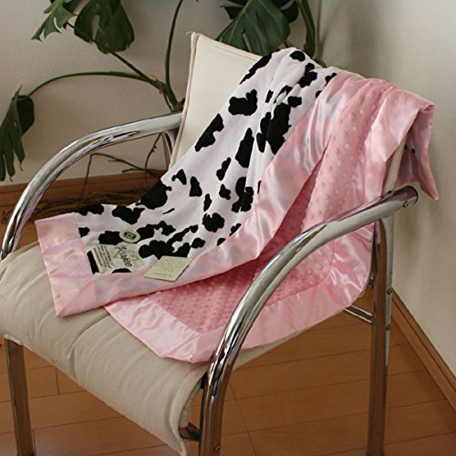 【出産祝い用ギフトラッピング無料】マイブランキー ホルスタイン柄×ドットベロア ストローラーブランケット ピンク (ふちどりフラット) My Blankee animal cow Stroller Blanket Pink 【並行輸入品】