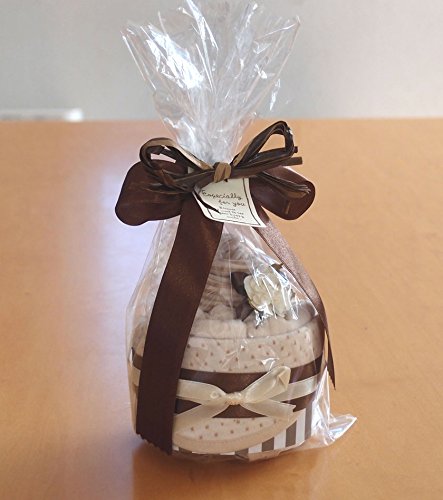 - ベビー服とスタイやキャップのセットが素敵なケーキ風のラッピングでお届け予定