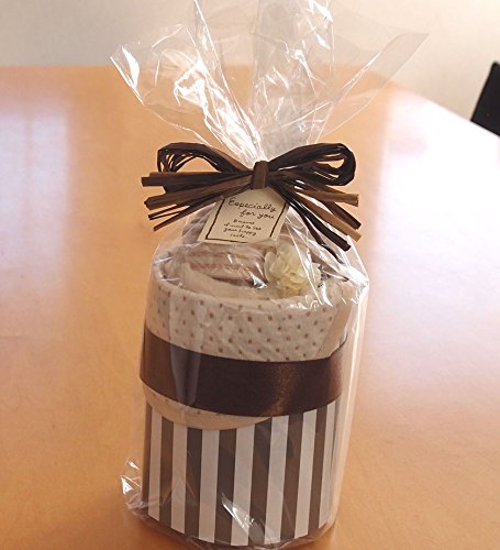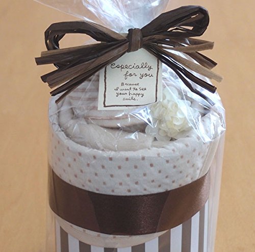 - ベビー服とスタイやキャップのセットが素敵なケーキ風のラッピングでお届け予定
