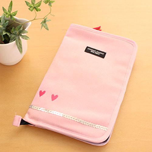 StudioPOPPO ピンクのハート刺繍 母子手帳ケース 通帳入れ、パスポートケースとしても