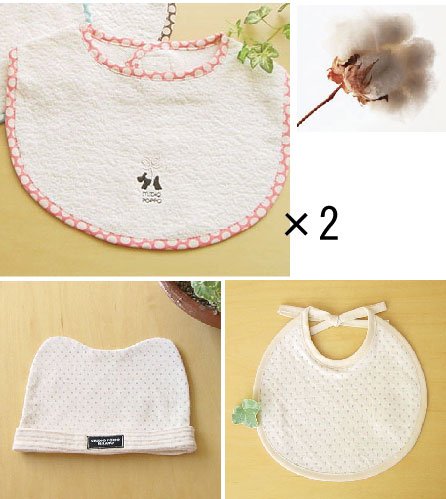 こちのスタイ2点とその他オーガニックのスタイとおそろいのニットキャップもお付けした4点セット