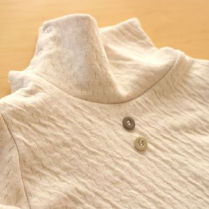 頭の大きい赤ちゃんが着脱しやすいよう肩にスナップボタンがついています。