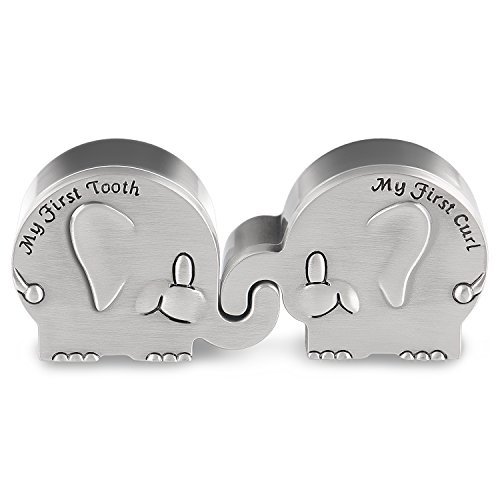NASHRIO ベビー 初めての歯 妖精とカール 記念品 箱 - キュートな子供のメタリックの象の形を彫り込んだ、子供の思い出の品を保存するのに最適なギフト