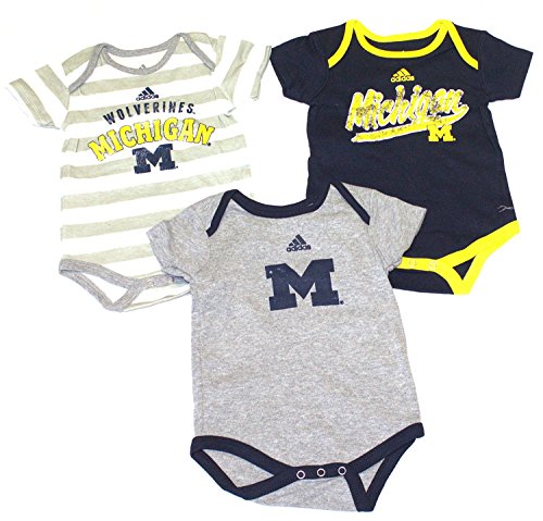 NCAA公式Michigan Wolverines Distressed Print 3個入ります。ボディスーツクリーパーCrawler Set