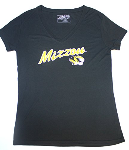 NCAA Officially Licensed Missouri Mizzou Tigers Women 's MizzouラインストーンブラックVネックシャツ 3L