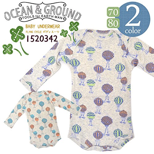 (ocean&ground)オーシャン&グラウンド ボディシャツ ボディスーツ 新生児 長袖 ロンパース 1520342 気球 自転車 ベビー 赤ちゃん 肌着 NV 80cm