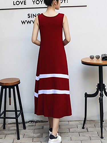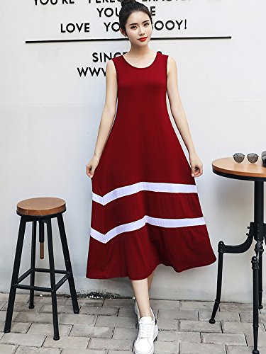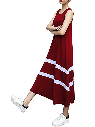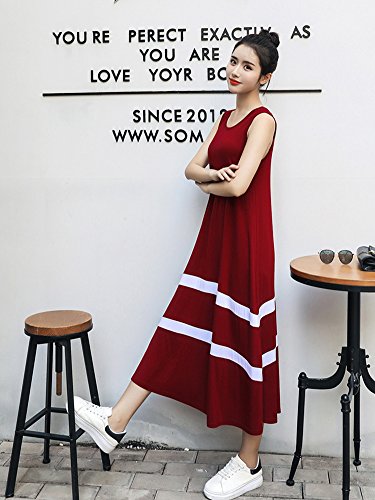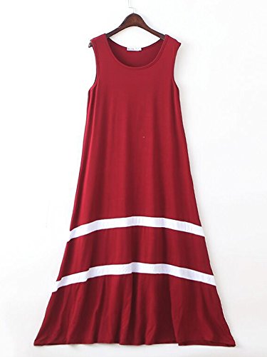 [ニーマンバイ] レディース ノースリーブ ロング 丈 ワンピ―ス レッド 赤 a ライン スカート ママ マタニティ 夏 大人 大きめ オオキイ オオキメ 大きい サイズ ビーチ リゾート 可愛い カワイイ オシャレ キレイメ カジュアル デート 春夏 春 オトナ 体型カバー ボーダー 大人用 20 30 40 50 代 部屋着 ユッタリ シンプル ルームウェア ワンピ C042-RDXL