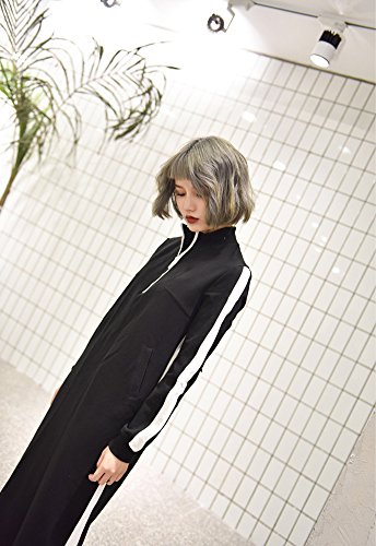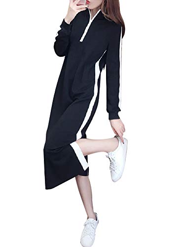 [ニーマンバイ] ジャージ ロング 長袖 ワンピース レディース カジュアル 大きい 大きめ オオキイ サイズ カワイイ 部屋着 大人 キレイメ 女性 きれいめ ゆったり かわいい おしゃれ 10 20 30 40 代 用 ファッション 秋冬 お出かけ 森ガール 韓国風 ユッタリ 体型カバー ストレッチ ロング丈 スリット 大人のワンピース 黒 春 秋 冬 ロングワンピース ワンピ C084-L