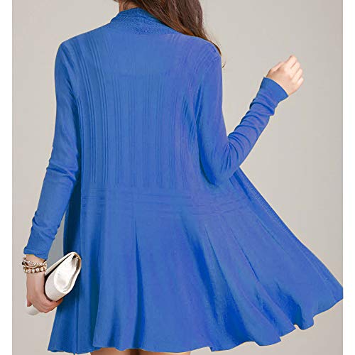 [ニーマンバイ] ロングトッパー カーディガン かーでぃがん 長袖 レディース らくらく ユッタリ サイズ ブルー カラー 春 春用 夏 春夏 夏用 春物 秋冬 通年 カワイイ 可愛い 女性 用 オシャレ お洒落 キレイメ キレイ目 きれいめ ファッション ポリエステル ストレッチ オフィス ビジネス カジュアル 楽チン 透かし編み 羽織 セミロングカーディガン レディス 青色 C070-DRBL