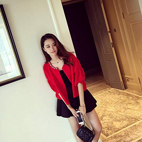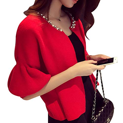 [ニーマンバイ] ビジュー ボレロ カーディガン 大きい オオキイ サイズ レディース 赤 レッド カラー 大人 用 ショート 丈 バルーン袖 カワイイ かわいい ウェディング ウエディング 結婚式 パーティー 可愛い 春 春秋 秋冬 冬 大人用 カジュアル オフィス 仕事 通勤 通学 ビジネス フォーマル フェミニン オシャレ キレイメ きれいめ ファッション カーデガン C079-RDXL