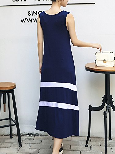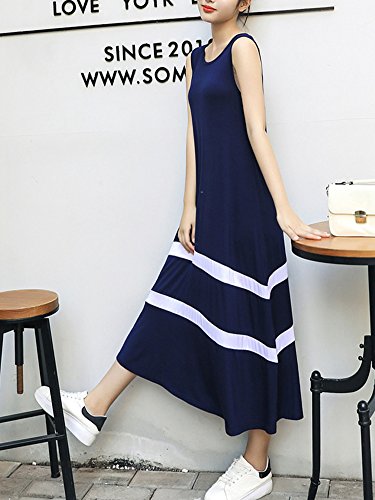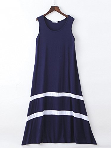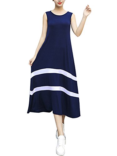 [ニーマンバイ] レディース ノースリーブ ワンピース ロング 長め 丈 大きい オオキイ l サイズ 春夏 夏 大人 用 カジュアル オシャレ キレイメ カワイイ アウトドア 2本 ボーダー a ライン ネイビー 紺 紺色 カラー ポリエステル ストレッチ 素材 生地 マタニティ ママ 可愛い シンプル デート リゾート お出かけ ルーム リラックス ユッタリ ウェア 普段着 C042-NVL