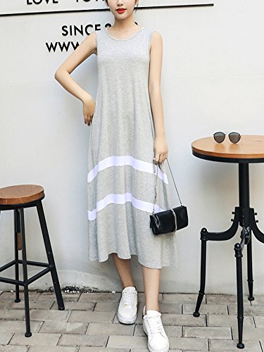 [ニーマンバイ]a ライン ノースリーブ ワンピース 10 20 30 40 50 代 50 オオキイ 大きい l サイズ 着痩せ 着やせ 大人 カワイイ ユッタリ グレー グレイ ママ マタニティ レディース デート キレイメ カジュアル アウトドア 春 夏 リゾート 部屋着 ルームウェア 体型カバー オシャレ シンプル 大きめ 白 ボーダー 2本 ロング 丈 ビーチ ワンピ C042-GYL