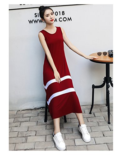 [ニーマンバイ]大人 シンプル ノースリーブ ロング 丈 ワンピース 女性用 レッド 赤 カワイイ レディース カジュアル a ライン 白 ボーダー ストレッチ 春 夏 キレイメ ママ マタニティ ウェア ルームウェア 体型カバー オシャレ 20 30 40代 50 ファッション ルームウエア ポリエステル 生地 ノビル 素材 春夏 着やせ 海 サマー デート ユッタリ ワンピ C042-RDM