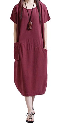 (ニーマンバイ) NEIMAN BY レディース 夏用 春用 春夏 m サイズ キレイメ v オフィス ビジネス ヒザ 下 丈 パーティ 赤 レッド 春物 大人 バルーン ワンピース オデカケ オヨバレ 出動 20代 事務服 ユッタリ アジアン エスニック 風 カジュアル オシャレ カワイイ 女 ポケット 付き 着やすい ラクチン 半袖 学生 体型カバー 極 黒 ユル ワンピ C052-RDM-2