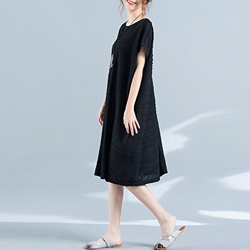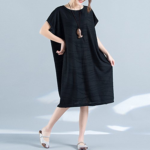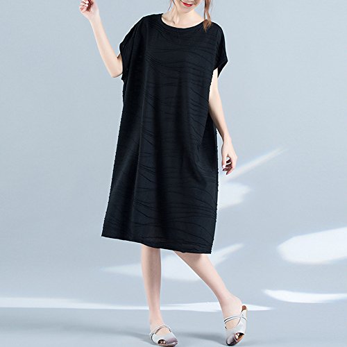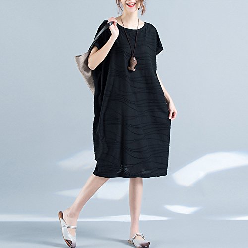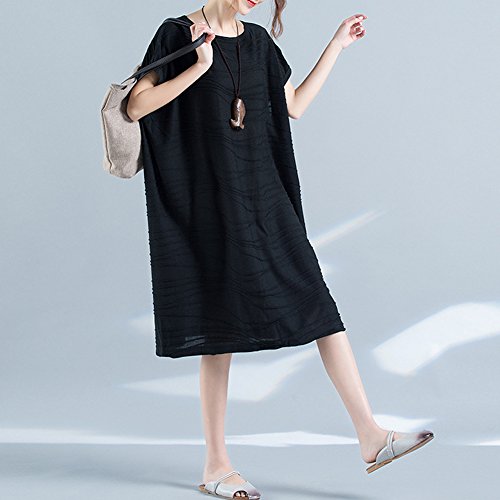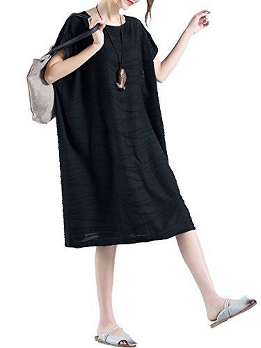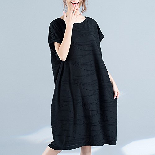 [ニーマンバイ] チュニック マタニティ ママ ワンピース スカート レディース ファッション 大きい サイズ 無地 半袖 おおきい ドレス ブラック 黒 森ガール 風 カワイイ かわいい ユッタリ 春 春服 夏 春夏 大人 オトナ 女性 用 膝丈 カジュアル リゾート パーティー パーティ ビーチ ルームウェア ナイトウェア パジャマ シンプル ワンピ 20 30 40 50 代 C060-BK