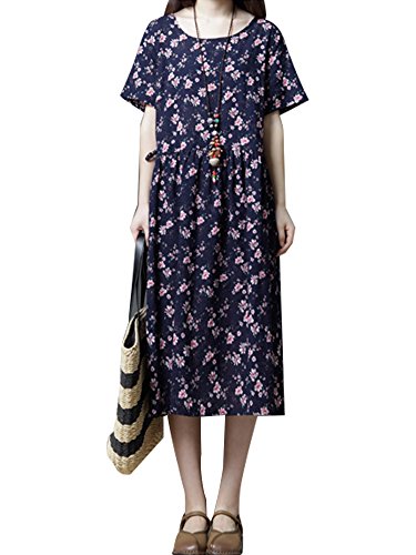 [ニーマンバイ] 花柄 半袖 森ガール ワンピース ネイビー レディース 大人 サイズ 20 30 40 50 代 用 ファッション 清楚系 ユッタリ ビジネス オフィス カジュアル 普段着 マタニティ お出かけ お宮参り 入園 卒業 式 パーティー キレイメ 春 夏 春夏 秋冬 上品 カワイイ 大人のワンピース 膝下 ひざ ヒザ 膝 丈 a ライン スカート チュニック ワンピ C071-NVM