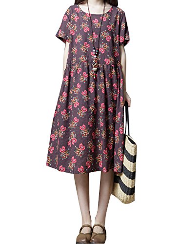 [ニーマンバイ] 花柄 半袖 森 ガール ワンピース ブラウン 茶色 レディース 春 夏 春夏 春用 夏用 春物 m サイズ きれいめ オシャレ カワイイ カジュアル オフィス ビジネス 普段着 お出かけ デート ユッタリ アジアン エスニック 風 膝 ひざ ヒザ 丈 ひざ下 大人 20 30 40 50 代 薄手 やわらかい 着心地いい ポリエステル 生地 スカート ワンピ C071-BRM