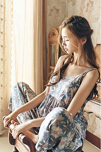 (ニーマンバイ) NEIMAN BY 花柄 ルームウェア 3点セット インスタ映え 抜け感 部屋着 パジャマ キャミソール レディース (XL, ブルー)