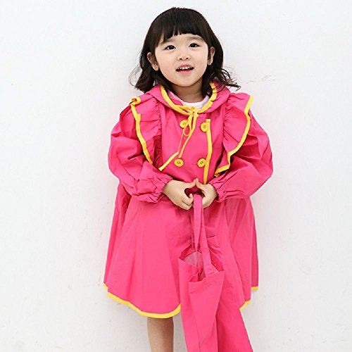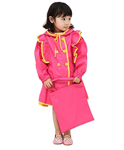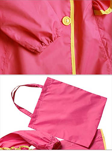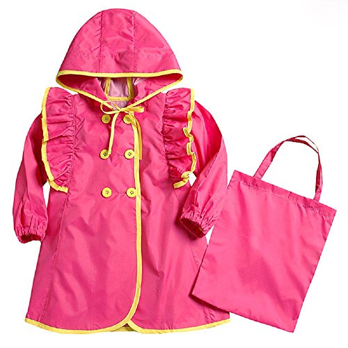 NEKOCAT キッズ 子供用レインコート女の子レインウエア シンプル無地 収納ポーチ付き ローズM