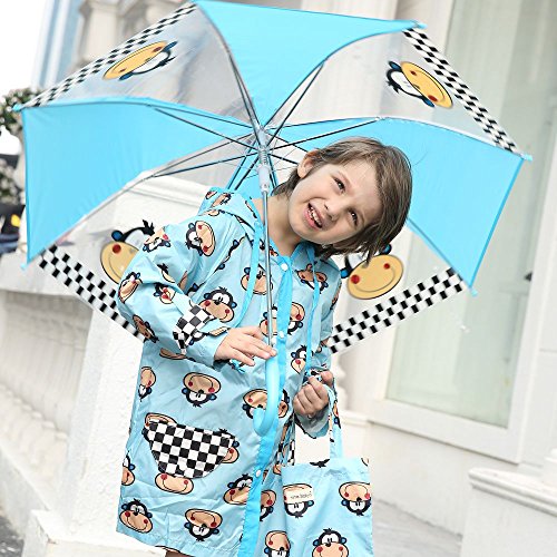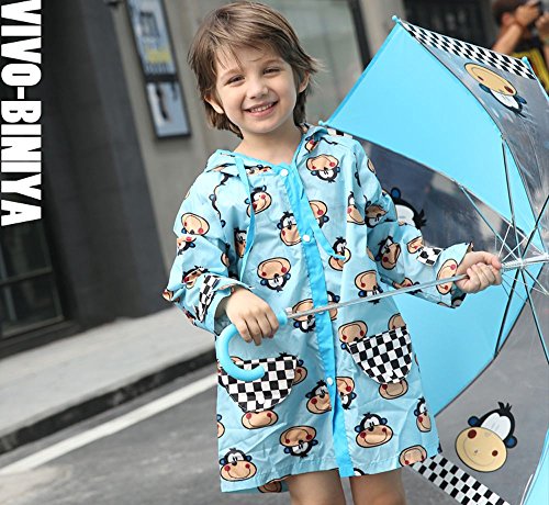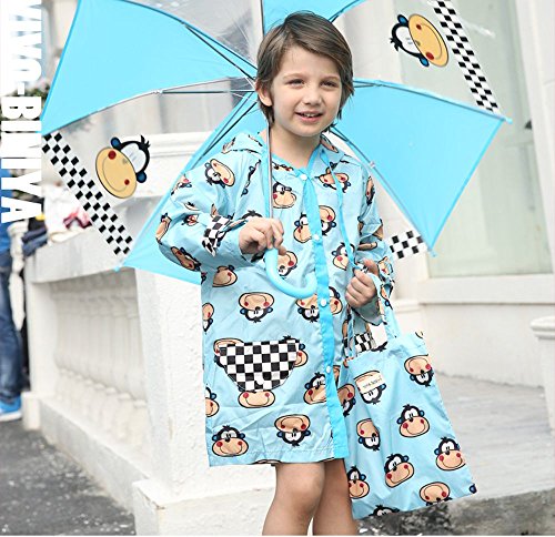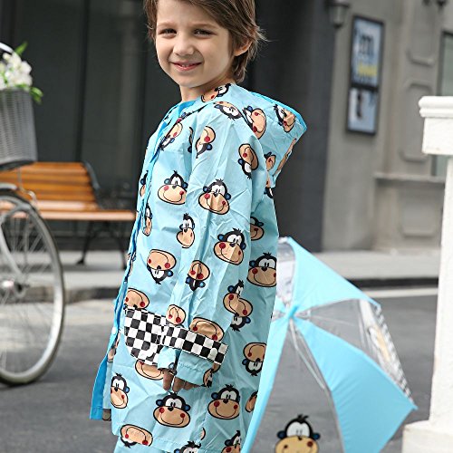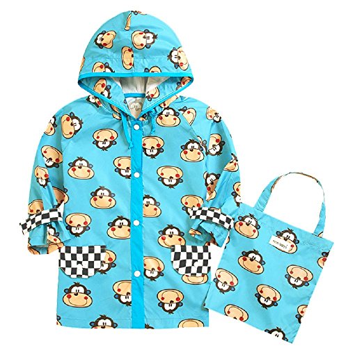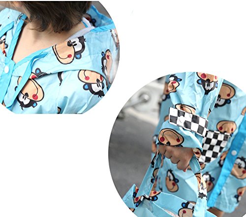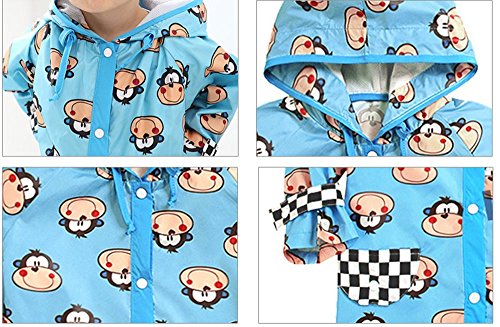 NEKOCAT キッズ 子供用レインコート男の子レインウエア サル柄 2-7歳適用 収納ポーチ付きブルーL