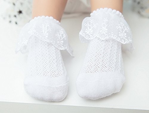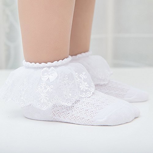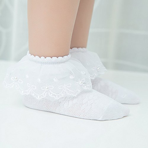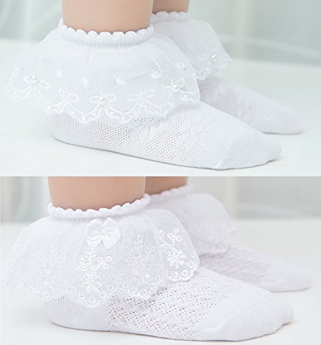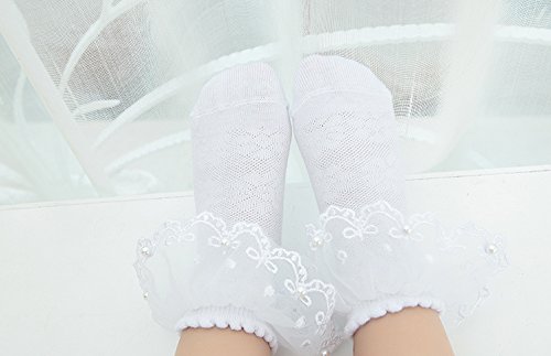 (2足セット) NEMO Baby かわいい レース編み 靴下 「リボン付き パール付き」 フリル キッズ 女の子 幼児用 ベビー ガールズ おしゃれ (M, ホワイト)