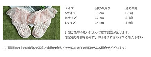 お子様の肌に優しい素材を使用し、一つ一つ丁寧に縫製された可愛いレース編みソックスです。 通気性と履きやすさが重視されているので、足にきちんとフィットし、ズレ落としにくいです。 毛玉が出にくいため、忙しいママに嬉しい靴下です。 11cm〜14cmまで用意しておりますので、1歳〜6歳のお子様にピッタリです☆