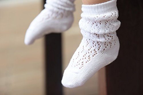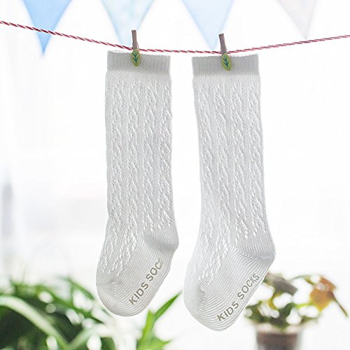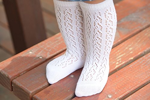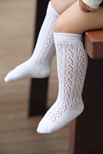 かわいい レース編み ハイソックス ベビー キッズ 女の子 ガールズ おしゃれ 発表会 (M, ホワイト)