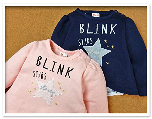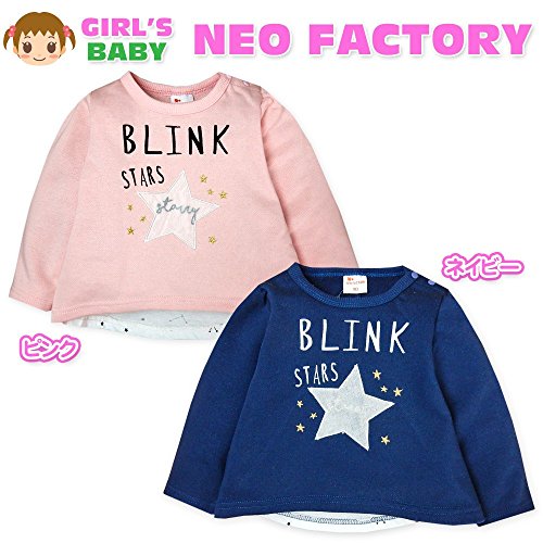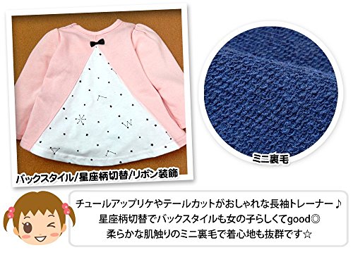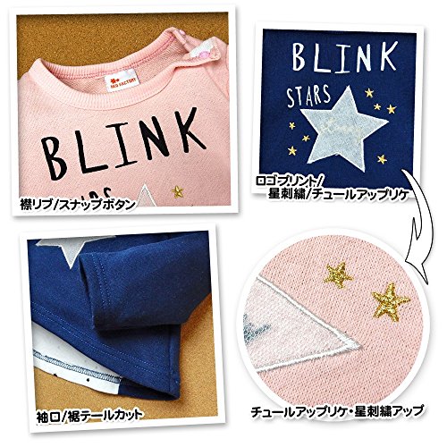 (ネイビー/90cm)ベビー服 女の子 トレーナー 長袖 ミニ裏毛 ロゴプリント 星刺繍 チュールアップリケ 裾テールカット 星座柄切替 スナップボタン 女児 ベビー