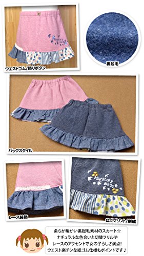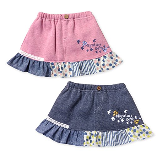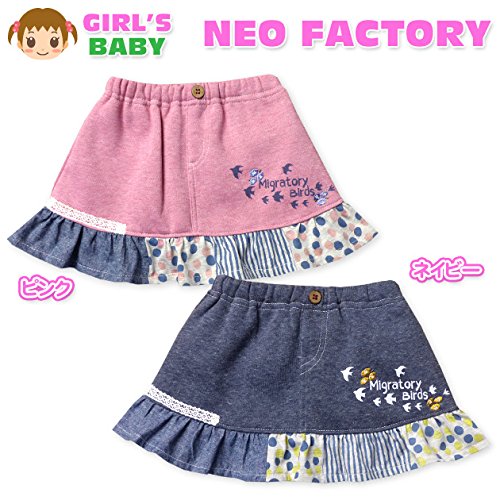 ベビー服 女の子 スカート ボトム 裏起毛 フリル付 柄切替 刺繍 杢調 ウエストゴム 女児 ベビー (2.ネイビー/80cm)
