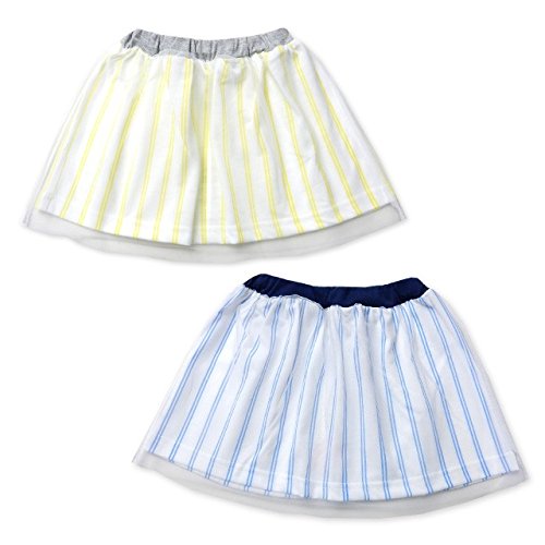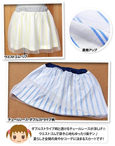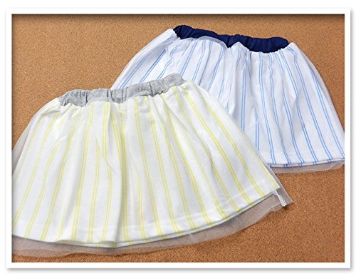 (イエロー/95cm)ベビー服 女の子 スカート ボトム チュールレース ダブルストライプ ウエストゴム 女児 ベビー