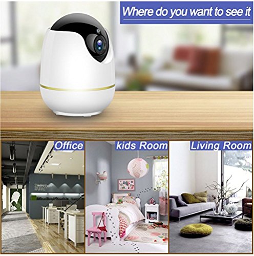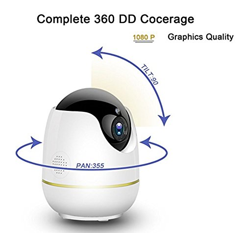 - 360° Complete Coverage: 120° wide-angle lens with 355° horizontal and 90° vertical rotation range brings you a complete 360° coverage. Quick WiFi Setup: Extremly quick one-step setup via qr code configuration, live view and 2 way audio available Advanced Motion Detection: Receive instant alert when motion is detected as well as automatically took snapshot, Work time and detection area can been customized