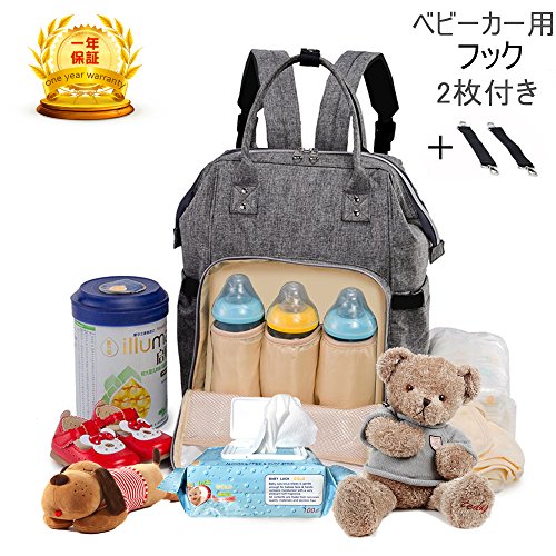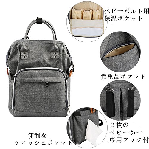 マザーズバッグ 大容量 ママリュック NEWSTYLE ベビー用品収納 保温機能ポケット ベビーカー用フック2枚付き 出産お祝い (ライトグレー)