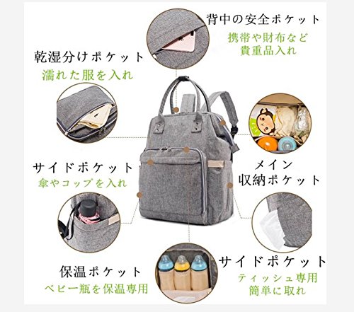 - ♥【安全で大容量】ベビー用品を入れるために、ホルムアルデヒドなし、発ガン性物質なしマザーズバッグ!内側は多機能の仕切りでを衣装の保存に便利な大容量トートバッグです。六つの仕分けが備わっております。2つの保温ポケットで、2つのメッシュポケット、1つのジッパーポケットと1つのPC収納ポケットがある便利なママリュックです。ワイヤー入りの開口部と双方向のゴールド金具を採用して、メインポケットは大きく開けて、中身が一目瞭然で、荷物の整理はしやすくなります。 本体には汚れや水に強いキャンバス素材を使用し、丈夫です。背当てには盗難防止ポケットがあるので、貴重品のスマホやキーケース、チケット、財布、パスケースなどの小物が入られて、安全で便利です。