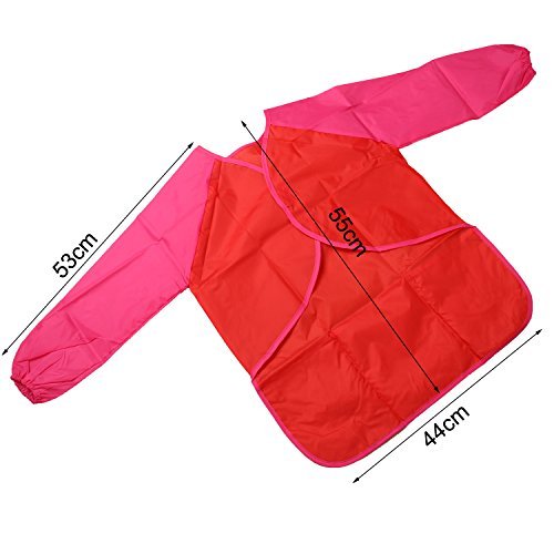 袖口にはゴムが入っているので、前身部分に3つの大きなポケットが付いているので、子供たちは水ペン、塗料、軽食や紙タオルや他のアイテムを置くのは便利です。